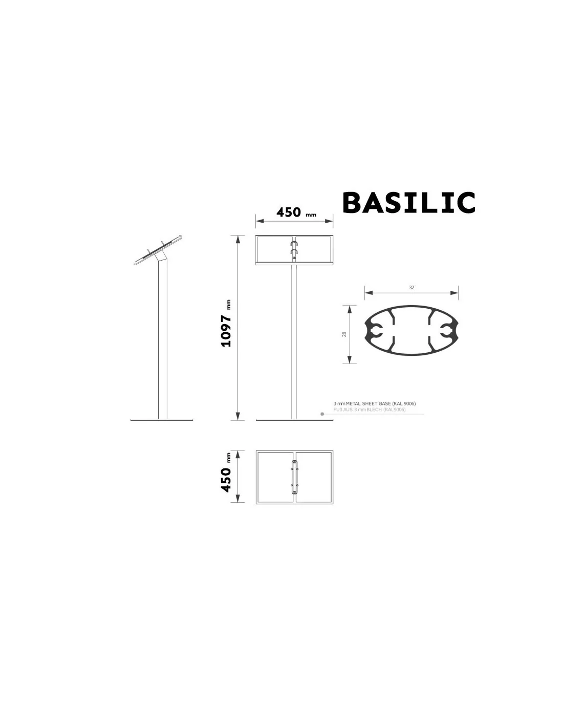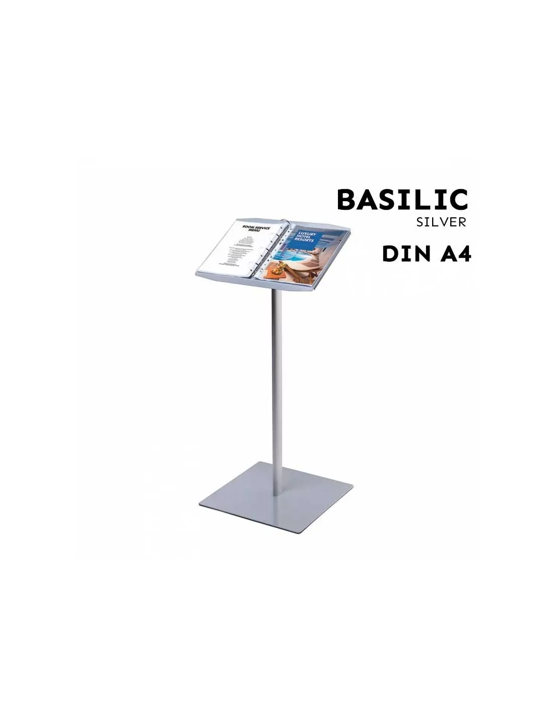 Atril metálico con anillas porta menú DIN A4 Modelo BASILIC