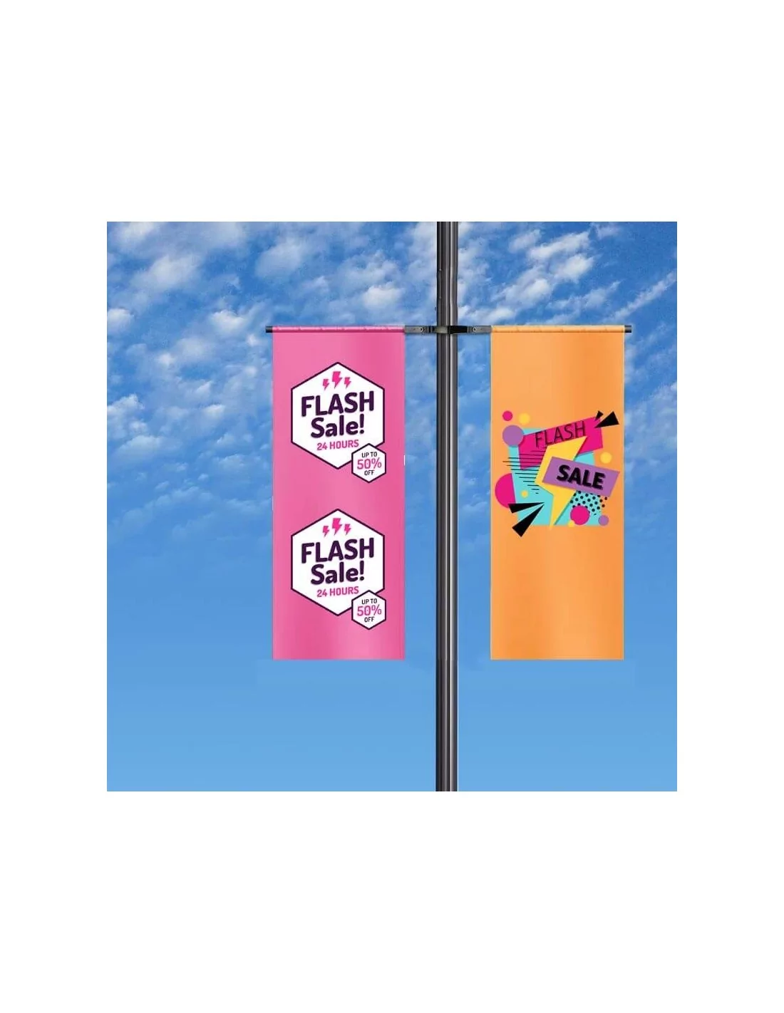 - Campañas de marketing local: Utiliza el soporte metálico doble para banderolas de lona en farolas como parte de tus campañas de marketing local. Puedes destacar la ubicación de tu negocio, transmitir mensajes promocionales específicos para la zona o aumentar la conciencia de marca en áreas geográficas específicas. Este enfoque segmentado te ayudará a llegar a tu público objetivo de manera más efectiva.
