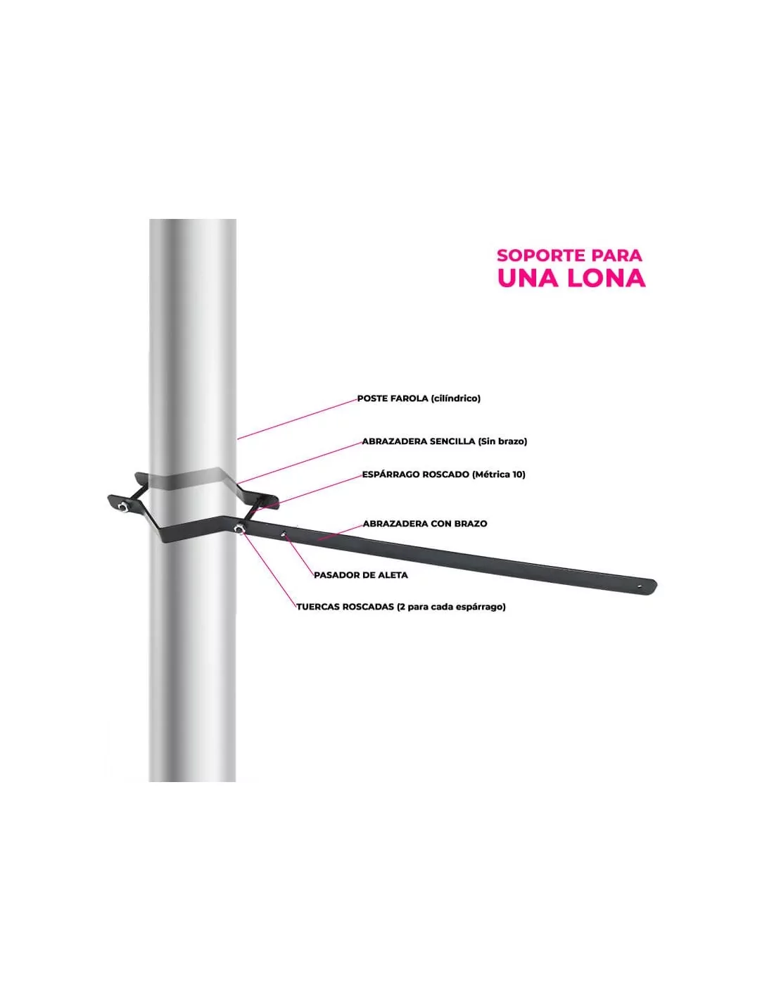 Soporte metálico sencillo homologado para banderolas de lona en farolas