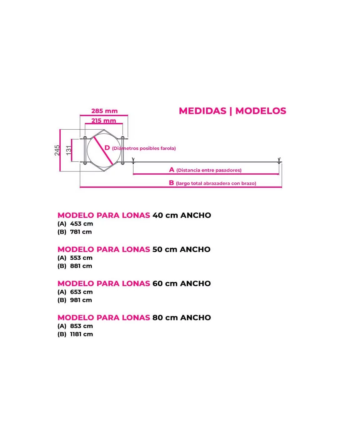 Opciones de instalación del soporte sencillo metálico para banderolas de lona en farolas