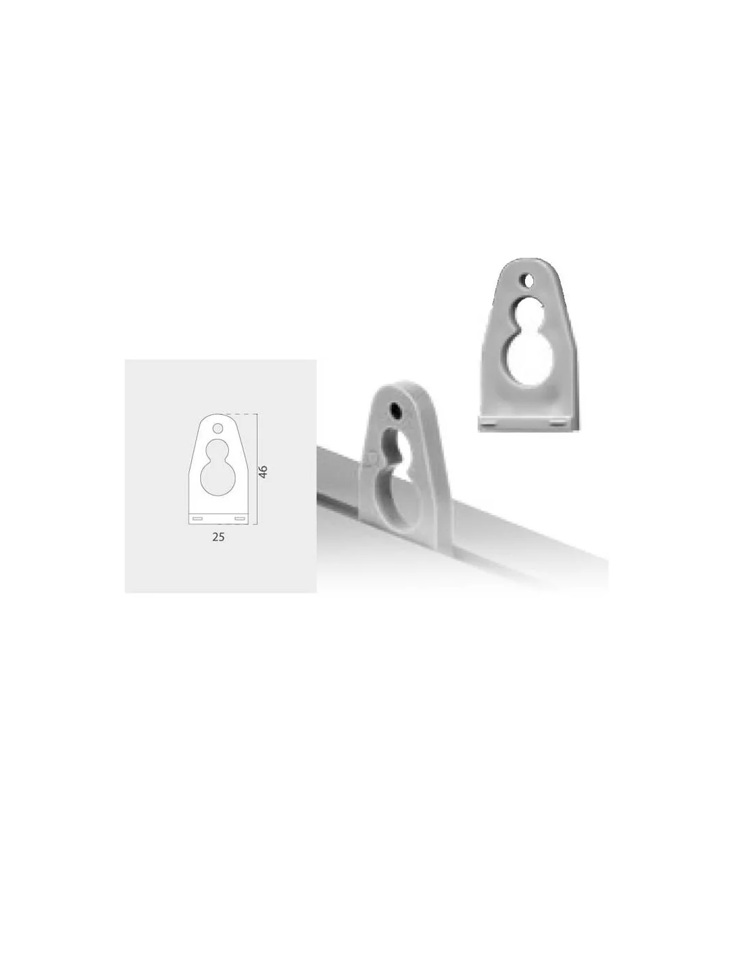 - Fijación en las cajas de luz: Engancha el colgador plástico a las cajas de luz de manera firme y precisa. Tendrás que introducir la base del colgador por la ranura exterior del perfil, antes del montaje. Asegúrate de que el ajuste sea seguro y estable.
