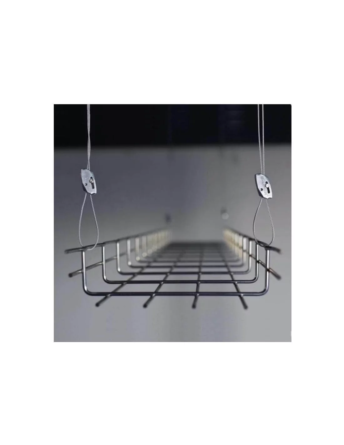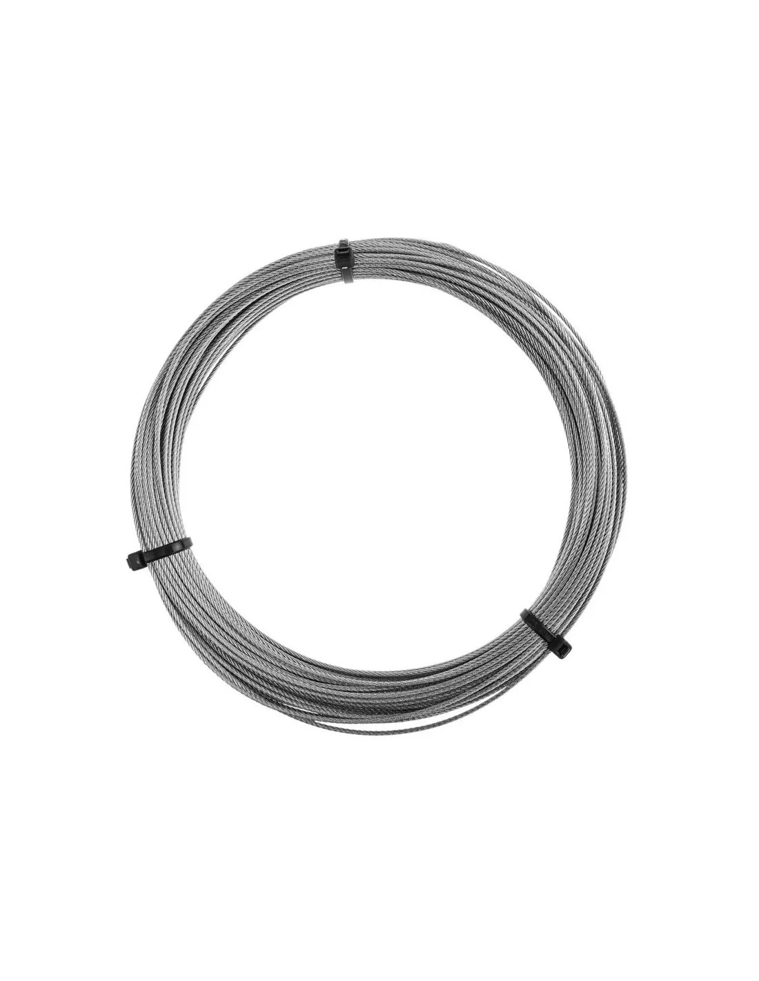Cable de acero trenzado de 2.5 mm de grosor semi-rígido y de alta resistencia. Perfecto para colgar del techo cartelería y señalización