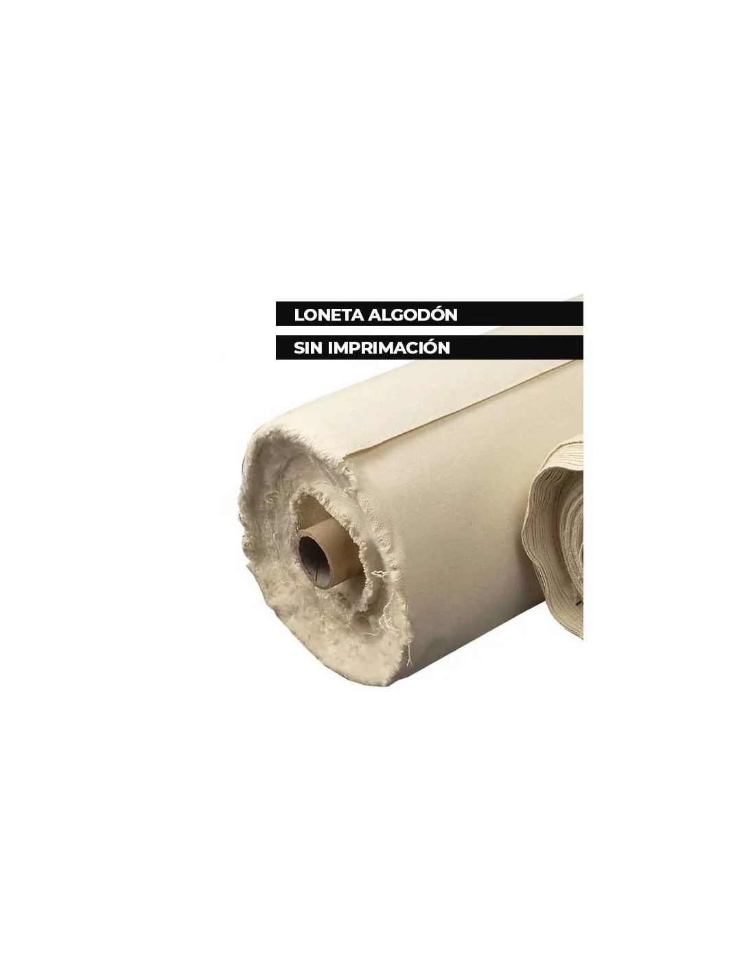 El lienzo de loneta de algodón blanco, con un reverso en tono crudo y un peso robusto de 460 gramos por metro cuadrado, se distingue por su excepcional resistencia gracias al grosor de sus hilos. Esta cualidad lo convierte en la elección perfecta para proyectos exigentes que requieren alta manipulación o aplicación de carga, como los realizados con espátula o en grandes formatos.