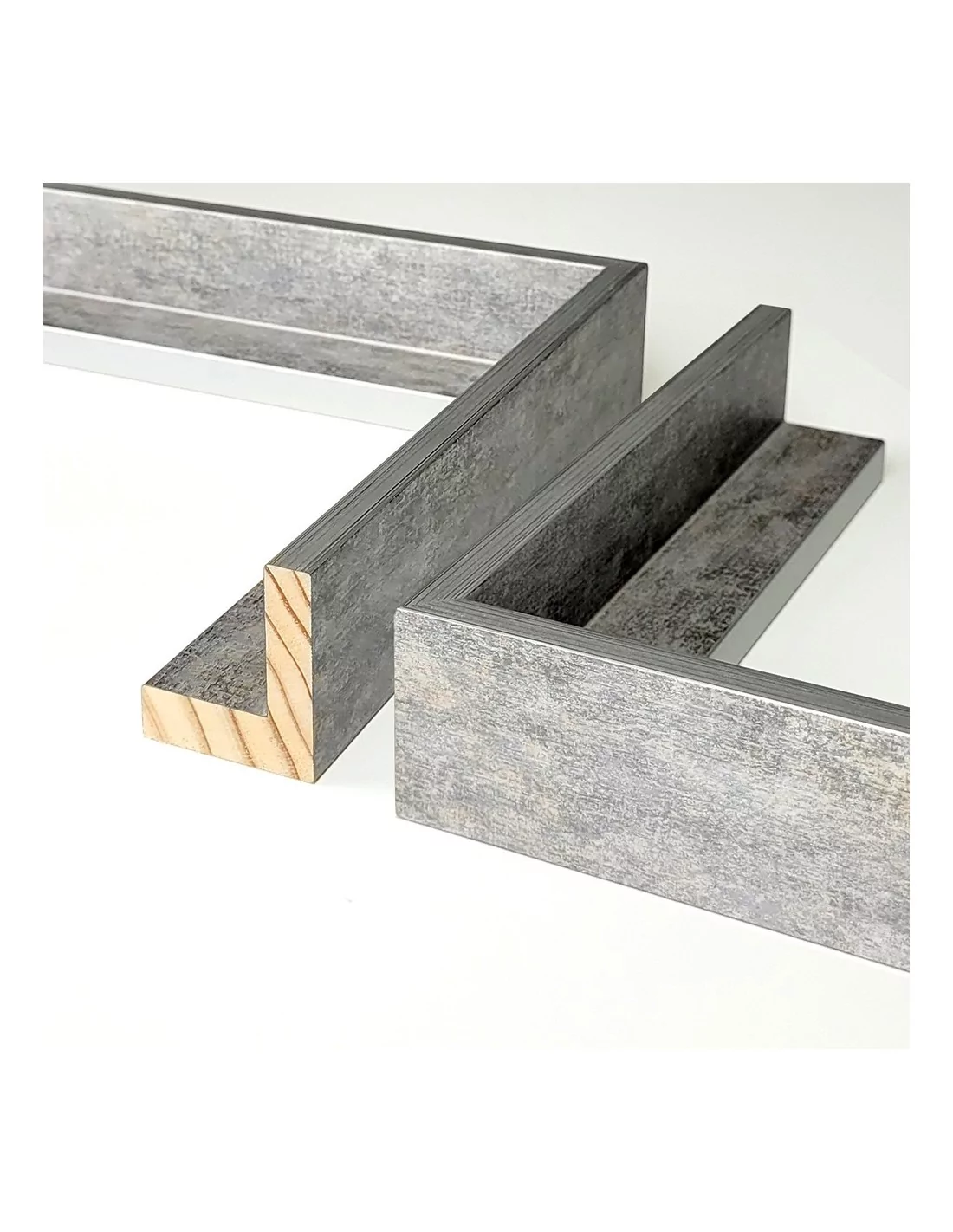 Moldura con perfil en forma de "L" de tipo caja americana pensadas para la enmarcación de lienzos con bastidor madera y fabricada en madera de pino.