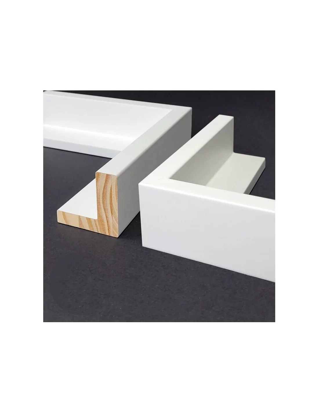Moldura con perfil en forma de "L". Caja americana pensadas para la enmarcación de lienzos con bastidor madera fabricada en madera de pino.