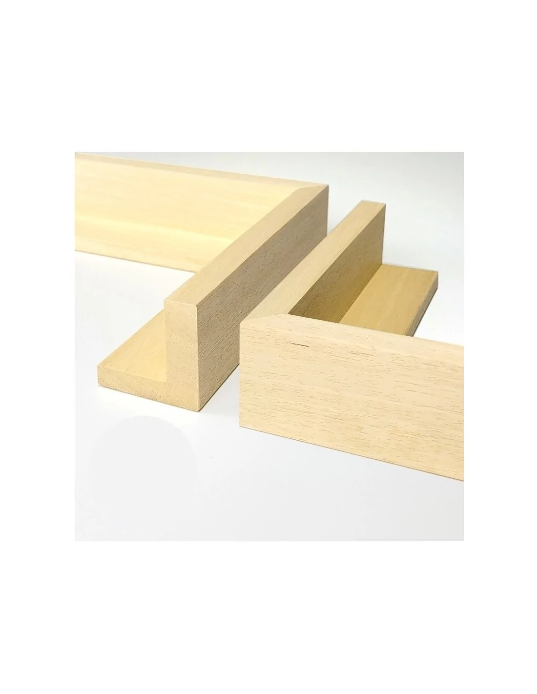 Moldura con perfil en forma de "L", caja americana pensadas para la enmarcación de lienzos con bastidor madera y fabricada en madera de AYOUS.