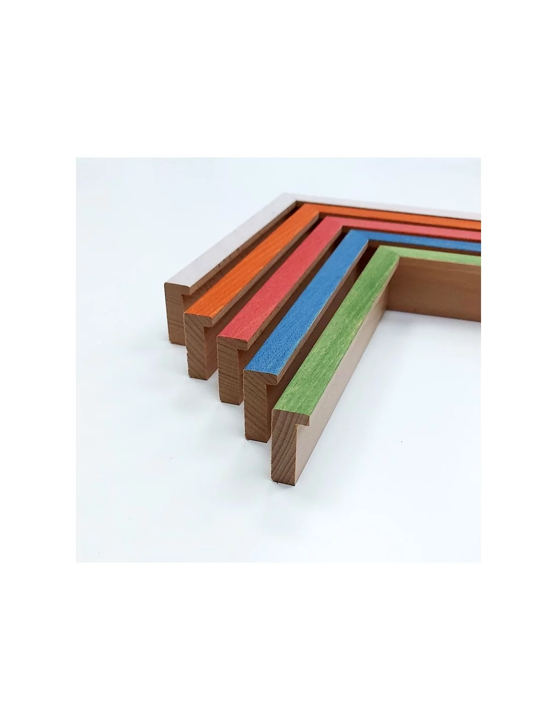 Moldura de madera HAYA maciza con TINTE NARANJA, para fabricar cuadros.