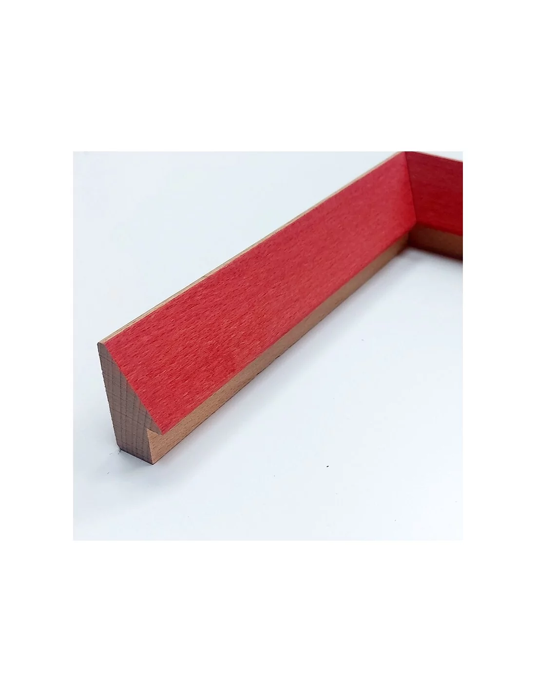 Moldura de madera HAYA maciza con TINTE ROJO TIPO PIRAMIDE, para fabricar cuadros.