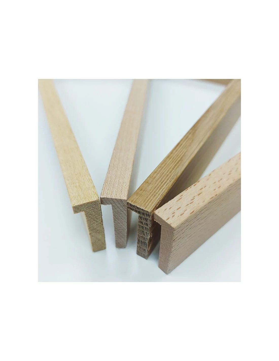 A diferencia de las molduras para cuadros forradas de chapa de madera, nuestra gama de molduras de madera macizas nobles, sólo se fabrican con listón de su madera.