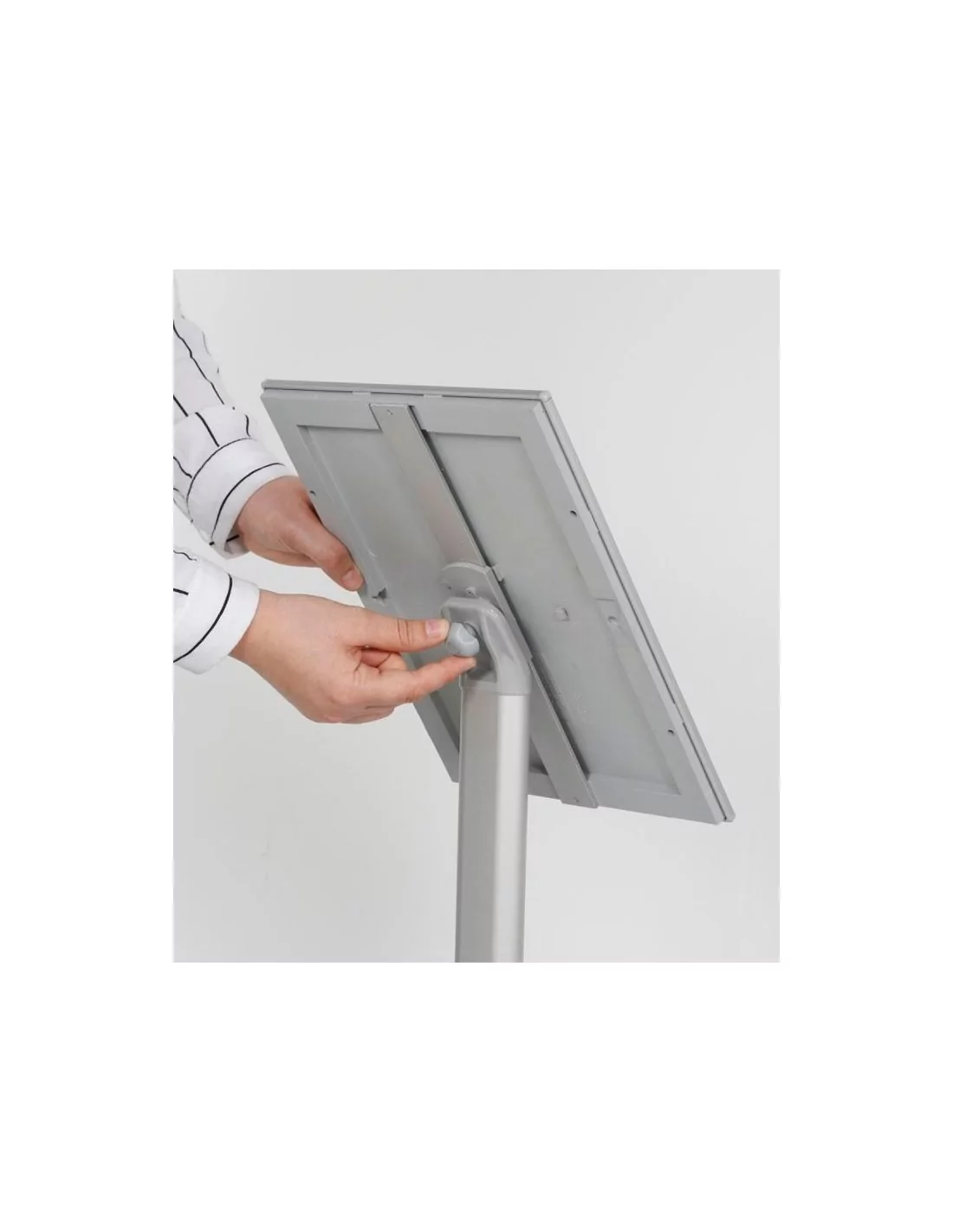 Lun - Jue 8h a 16h Vie 8h a 14hEl Expositor Inclinado Porta Menú en color plata es una solución versátil y elegante para la exhibición de información en sectores como hostelería, entretenimiento y comercio. Frecuentemente utilizado en bares, restaurantes, hoteles, cines y supermercados, su diseño inclinado asegura que los mensajes sean visibles y accesibles al público en tránsito.