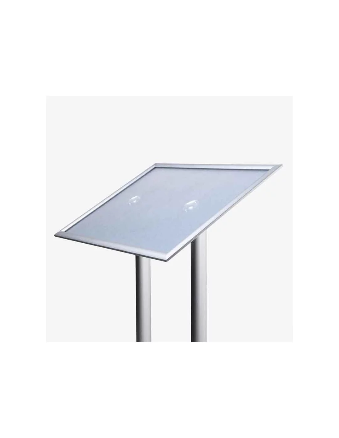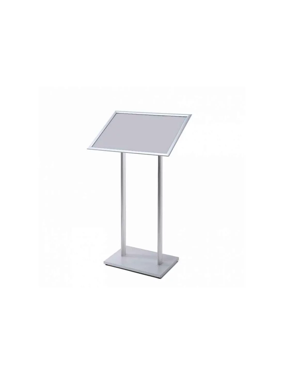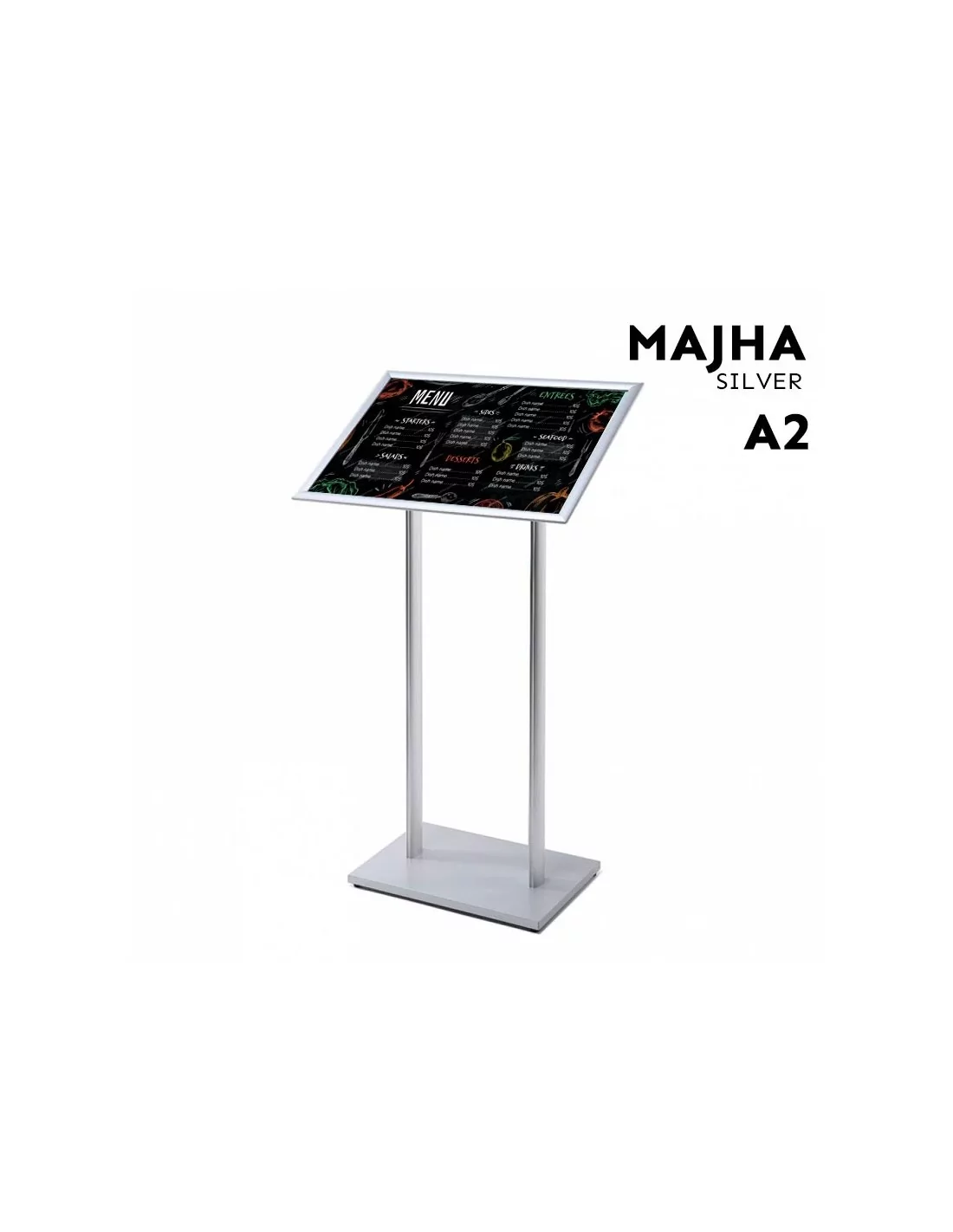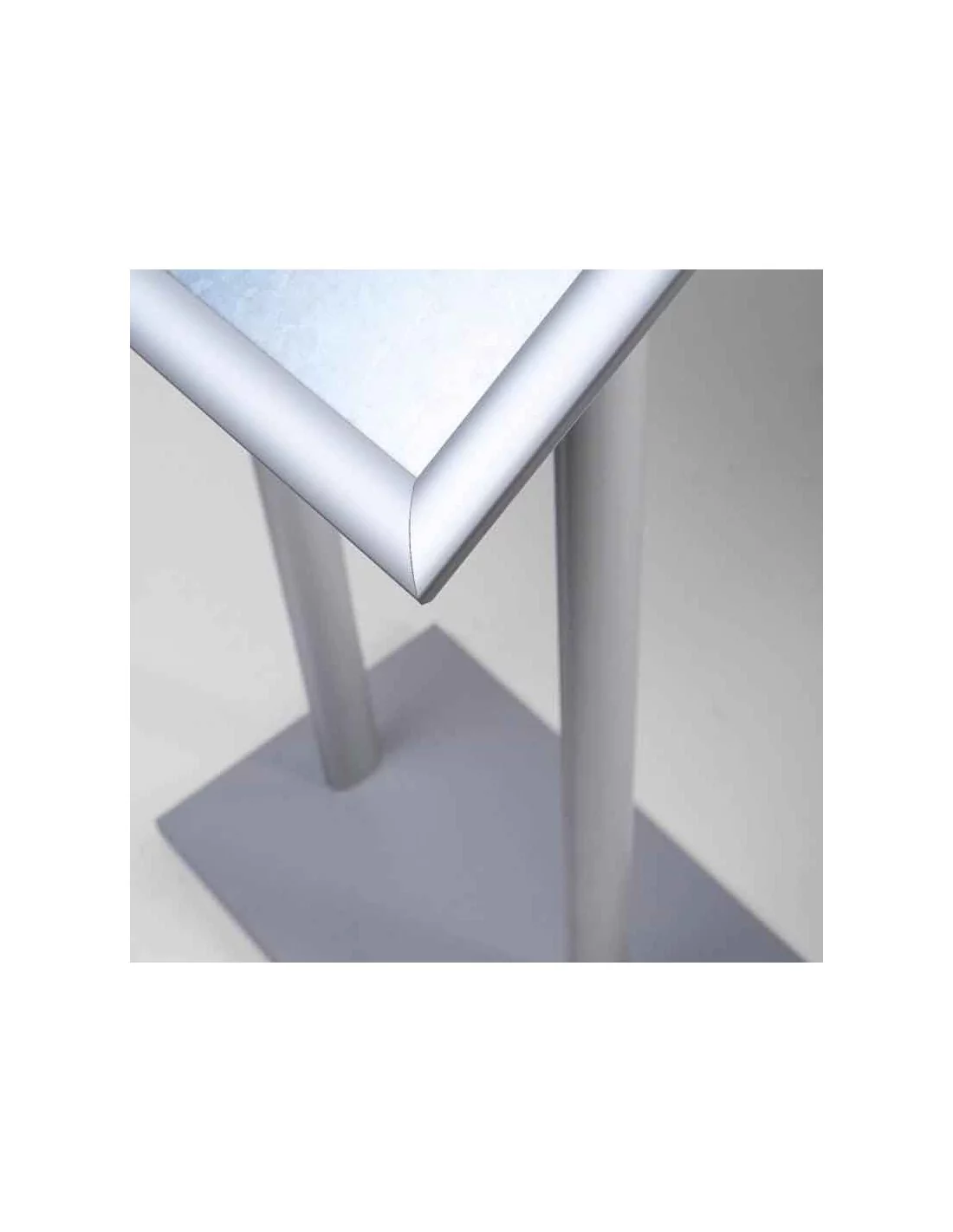 PORTA MENU INCLINADO COLOR PLATA - A2 - CON BARRA - MODELO MAJHA - MARCO 25 mm