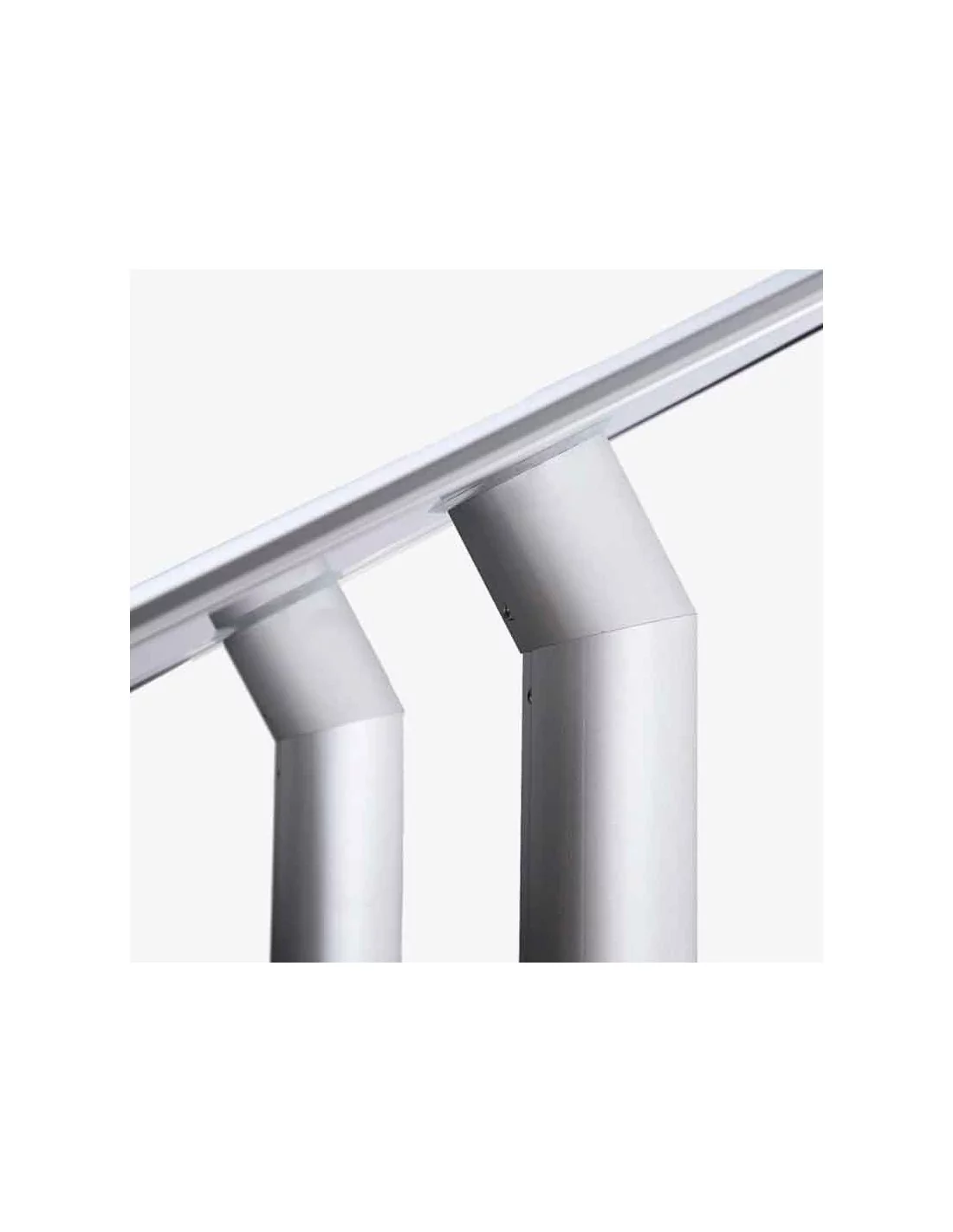 Con un sistema de fijación trasero, el expositor puede colocarse en orientación horizontal, adaptándose a diferentes tipos de contenido. Fabricado en aluminio y acero, destaca por su durabilidad, su marco a presión con un perfil de 25 mm para un cambio rápido de gráficas, y su protección antirreflejos, que mejora la visibilidad en áreas iluminadas.