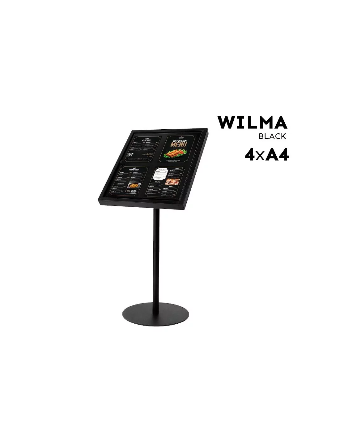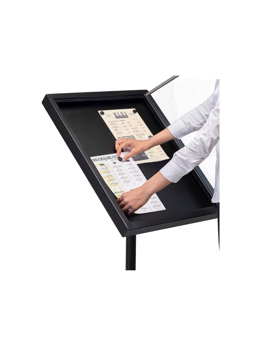 VITRINA PORTA CARTAS RESTAURANTE - COLOR NEGRO - PARA 4 x A4 - MODELO VILMA - CON BASE REDONDA