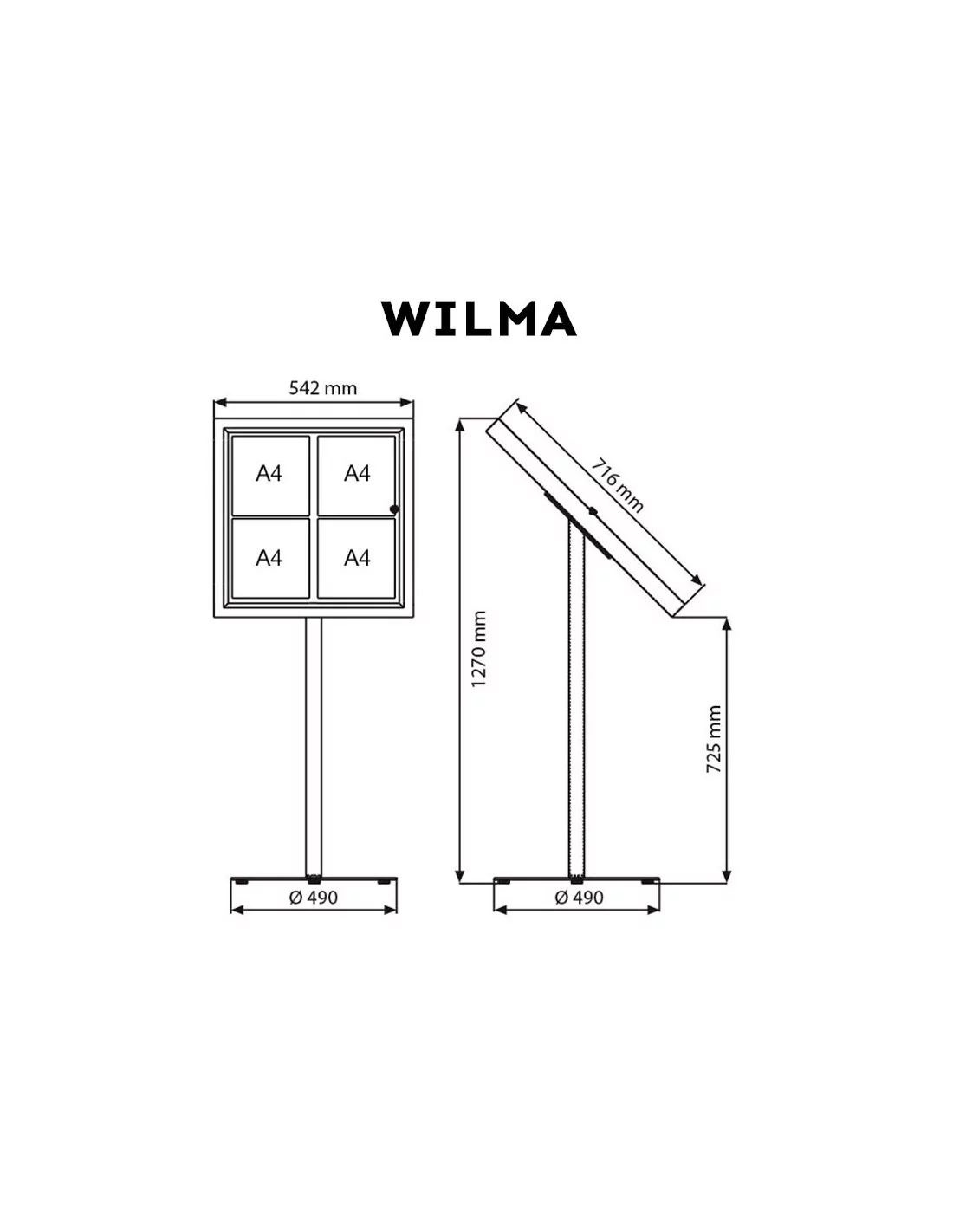 Detalle medidas Porta menú modelo WILMA tamaño 4xA4