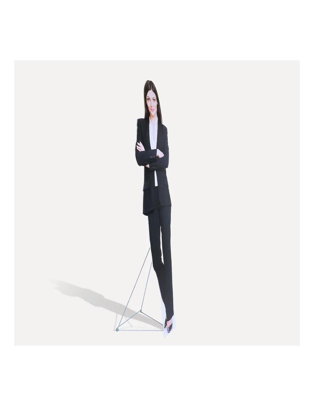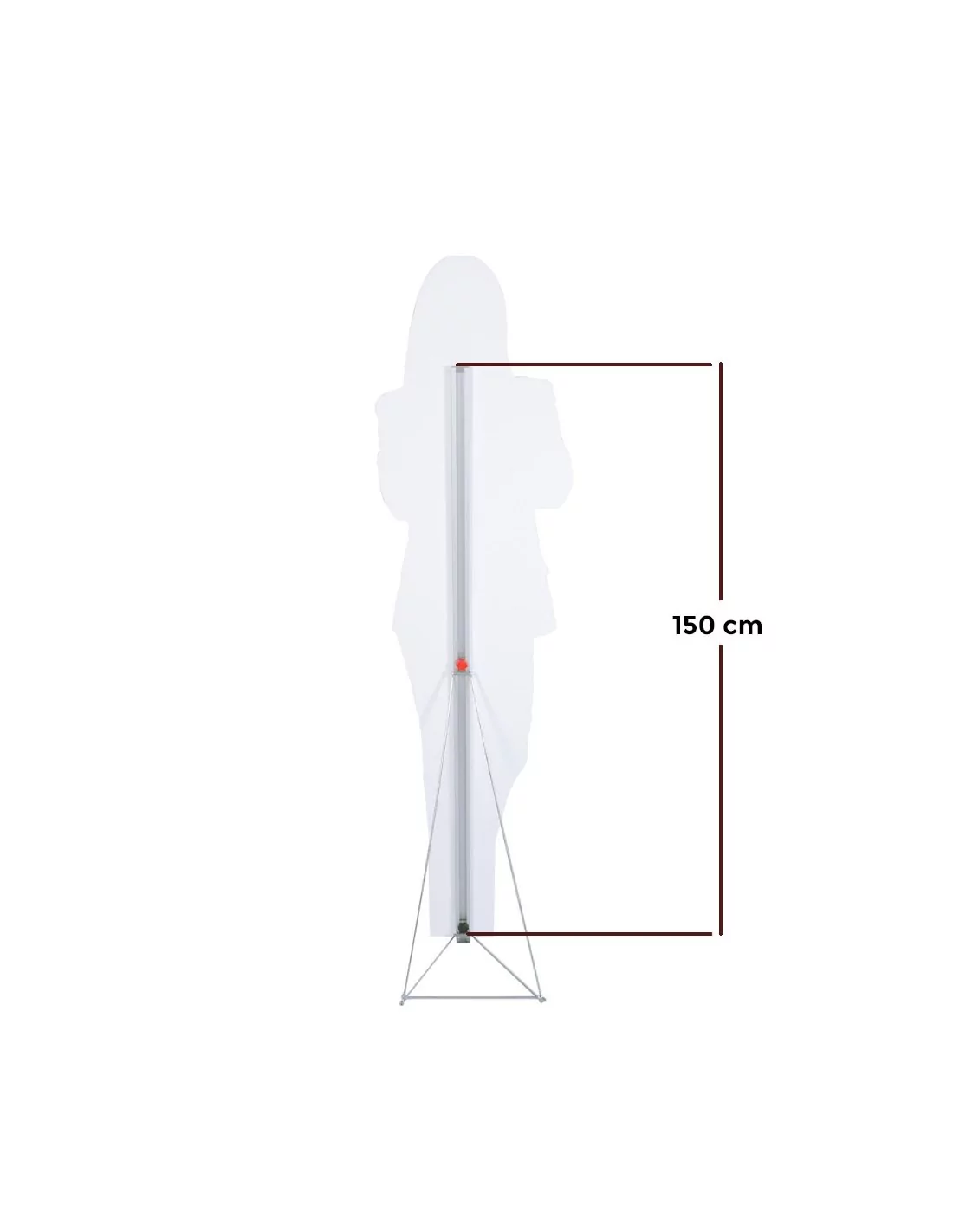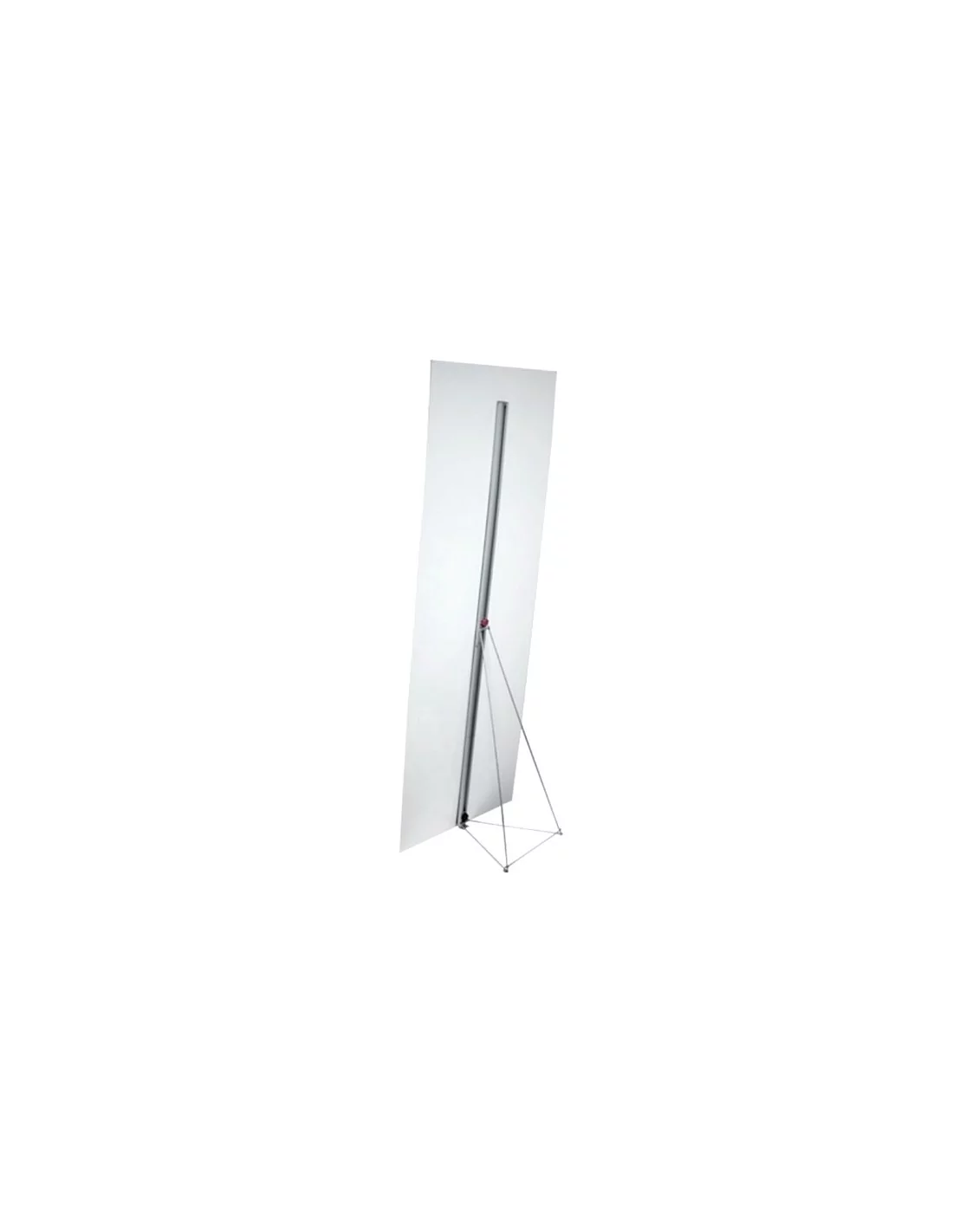 Con esta peana de aluminio extremadamente ligera (peso total 700 g.), podrás exhibir siluetas o gráficas promocionales impresas sobre Forex, Cartón pluma, Pegasus o Dibond de una forma elegante y discreta gracias a su ángulo ajustable
