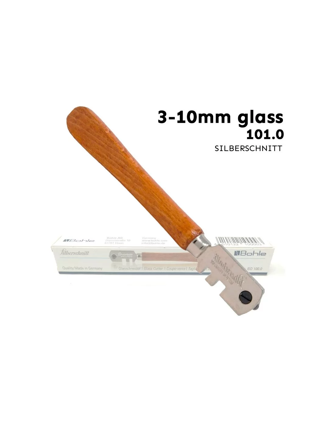 Le Silberschnitt® 100.0 avec poignée en bois et 6 rulines est l'outil idéal pour les professionnels du secteur du verre. Conçu pour assurer des coupes précises et durables, ce cutter combine technologie avancée et durabilité, s'adaptant parfaitement aux besoins des ateliers et des artisans. Son résistance, ergonomie et efficacité faire une option essentielle pour couper le verre de différents types, du verre flottant au verre ornemental.