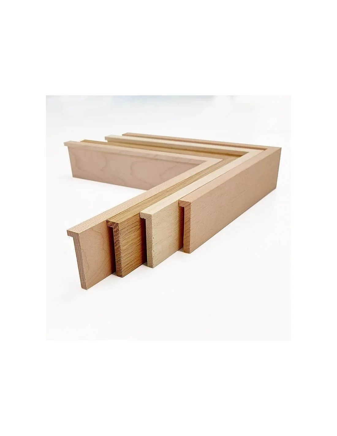 Contrairement aux moulages pour cadres plaqués en bois, notre gamme nobles moulages en bois massif, ils sont seulement fabriqués avec la lattes de leur bois.