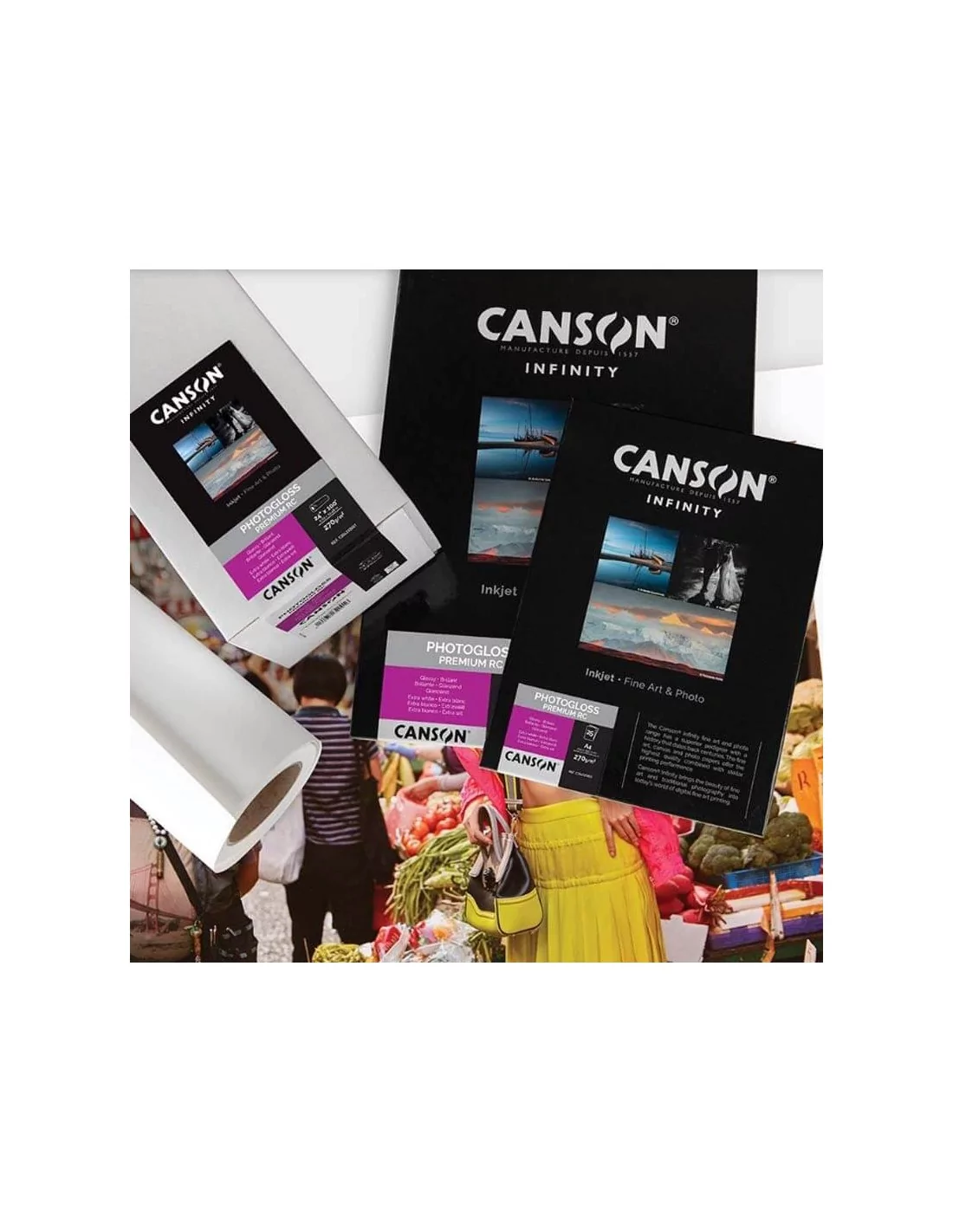 Le papier CANSON® INFINITY PHOTO GLOSS PREMIUM RC photo photographie 270 gr/m2 finition brillante pour impression numérique avec traceur.