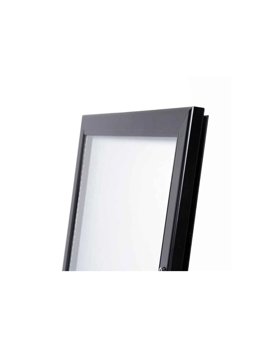 Avec un système de fixation arrière, l'affichage peut être placé dans directives verticale, s'adapter à différents types de contenu. Fait d'aluminium et d'acier, il se distingue par sa durabilité, panneau arrière magnétique pour un changement rapide des graphiques, et sa protection antiréflexion, qui améliore la visibilité dans les zones éclairées.