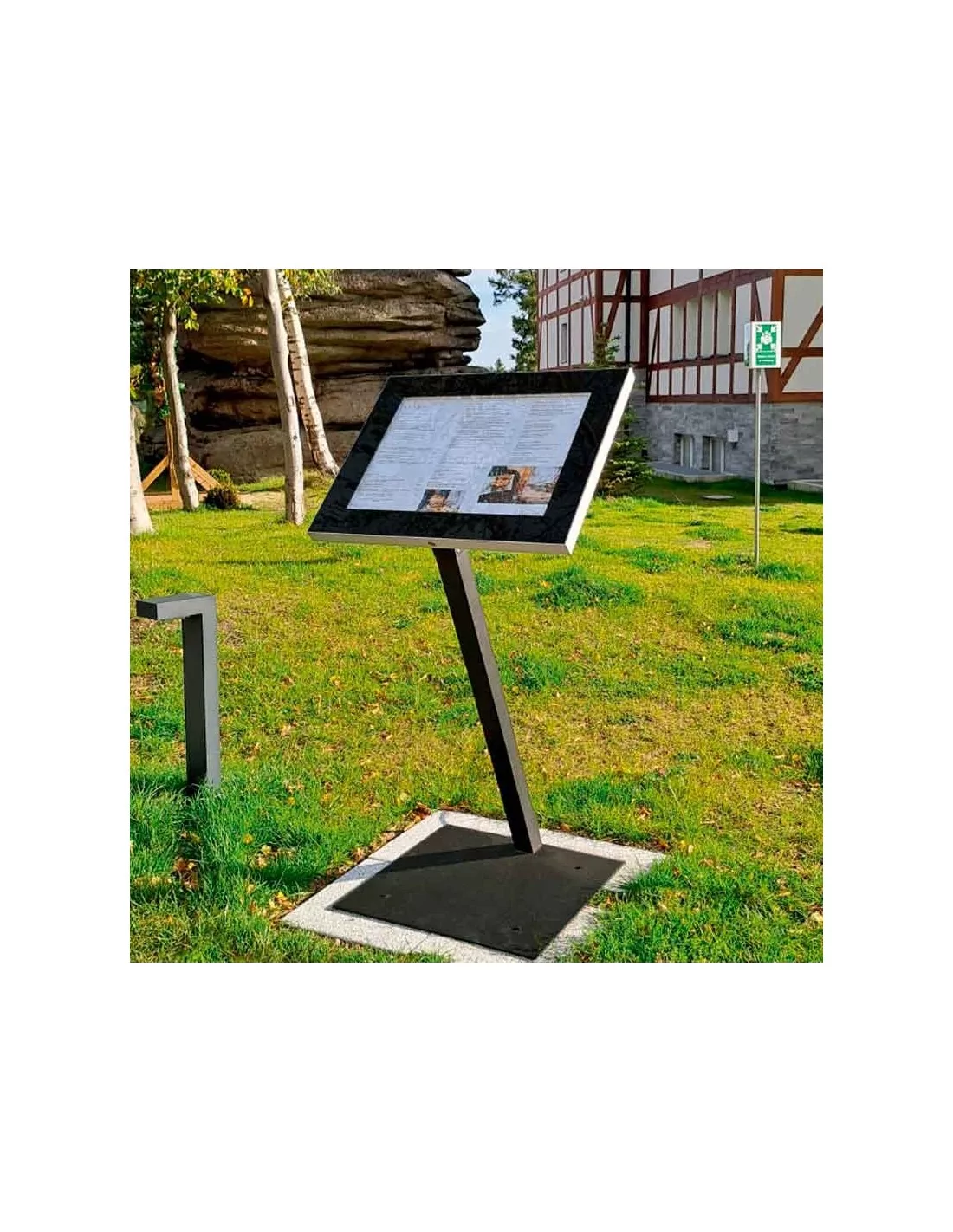 Avec un système de fixation arrière, l'affichage peut être placé dans directives horizontale, s'adapter à différents types de contenu. Fait d'aluminium et d'acier, il se distingue par sa durabilité, sa cadre vitrine pour les menus avec certification IP65 et verre protecteur avec impression en céramique noire.