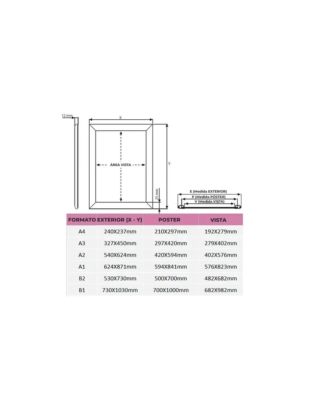BLANCO FRAMEWORK FOR POSTER ABATIBLE METÁLICO 25mm ANCHO SNAP FRAME Δ SCHINES IN INGLETE