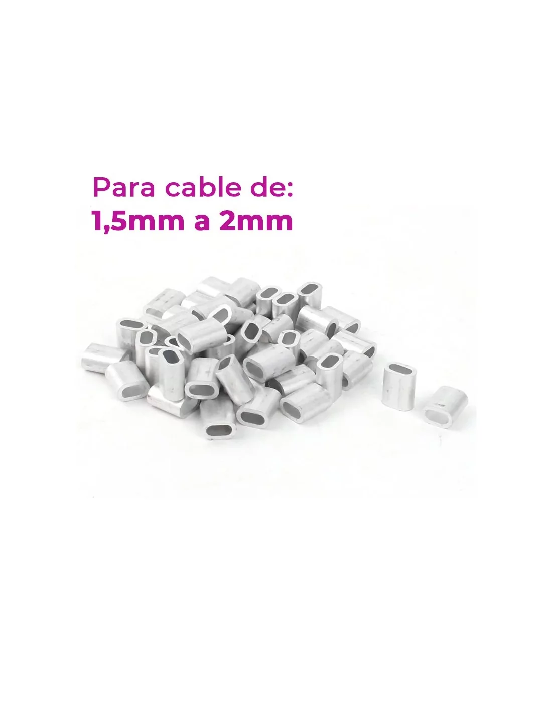 CASCO DE ALUMINIO para cabo de aço trançado. 1.5mm a 2 mm
