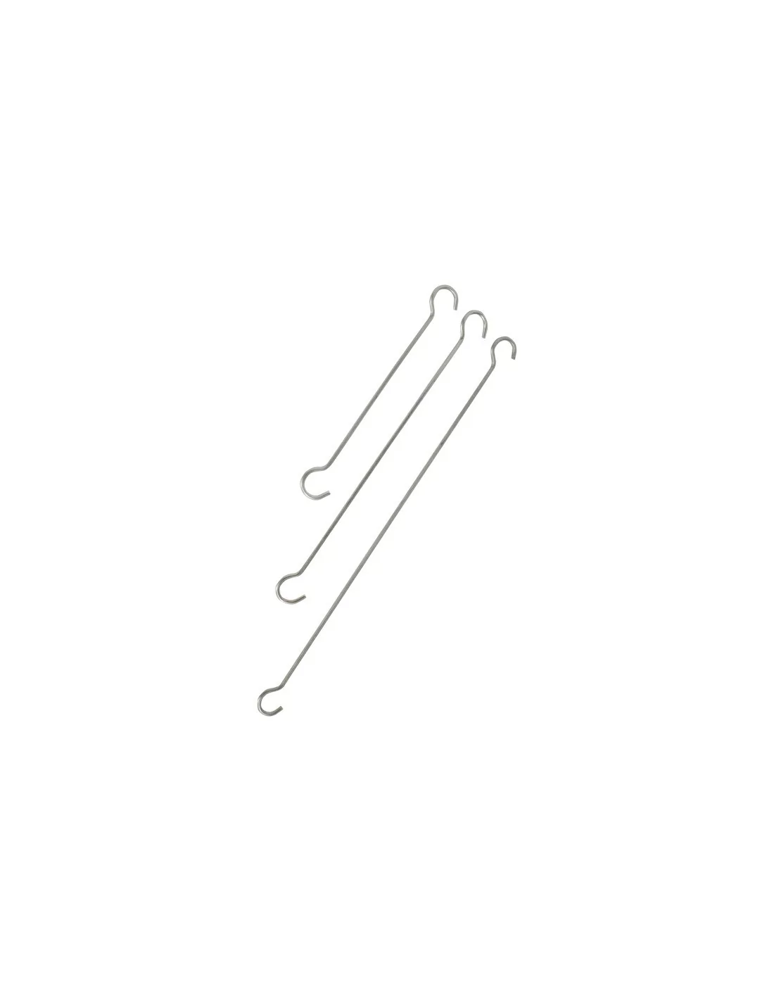 Uma haste galvanizada com dois ganchos abertos nas extremidades. Perfeitas para pendurar no teto