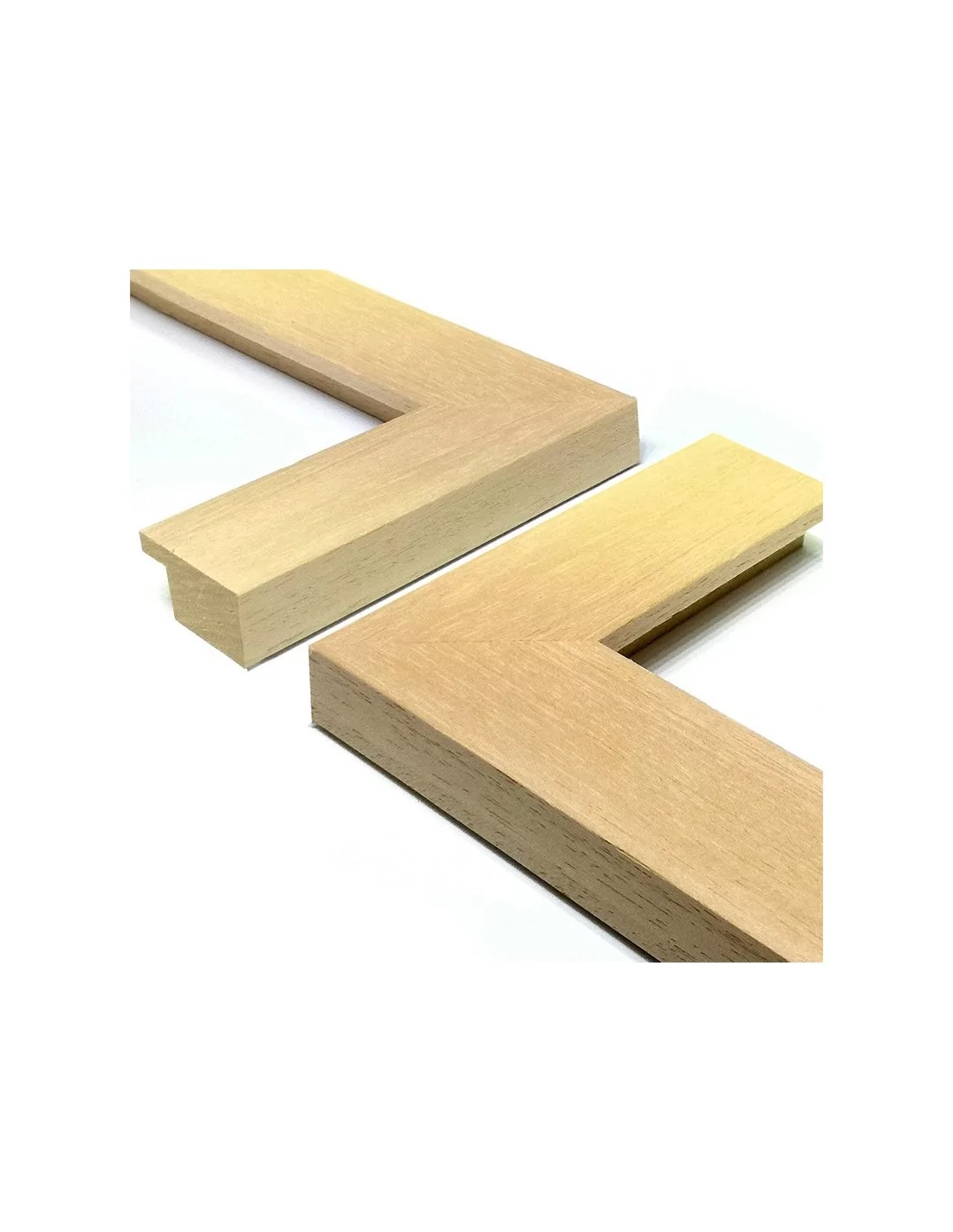 As nossas molduras de VAMOS para quadros é originária do Camarões e têm uma densidade média de cerca de 380 kg/m3. É por isso que o consideramos uma madeira macia e, quando fazemos a agregação deste tipo de molduras nas nossas molduras, precisamos de agrafos em "V" padrão.