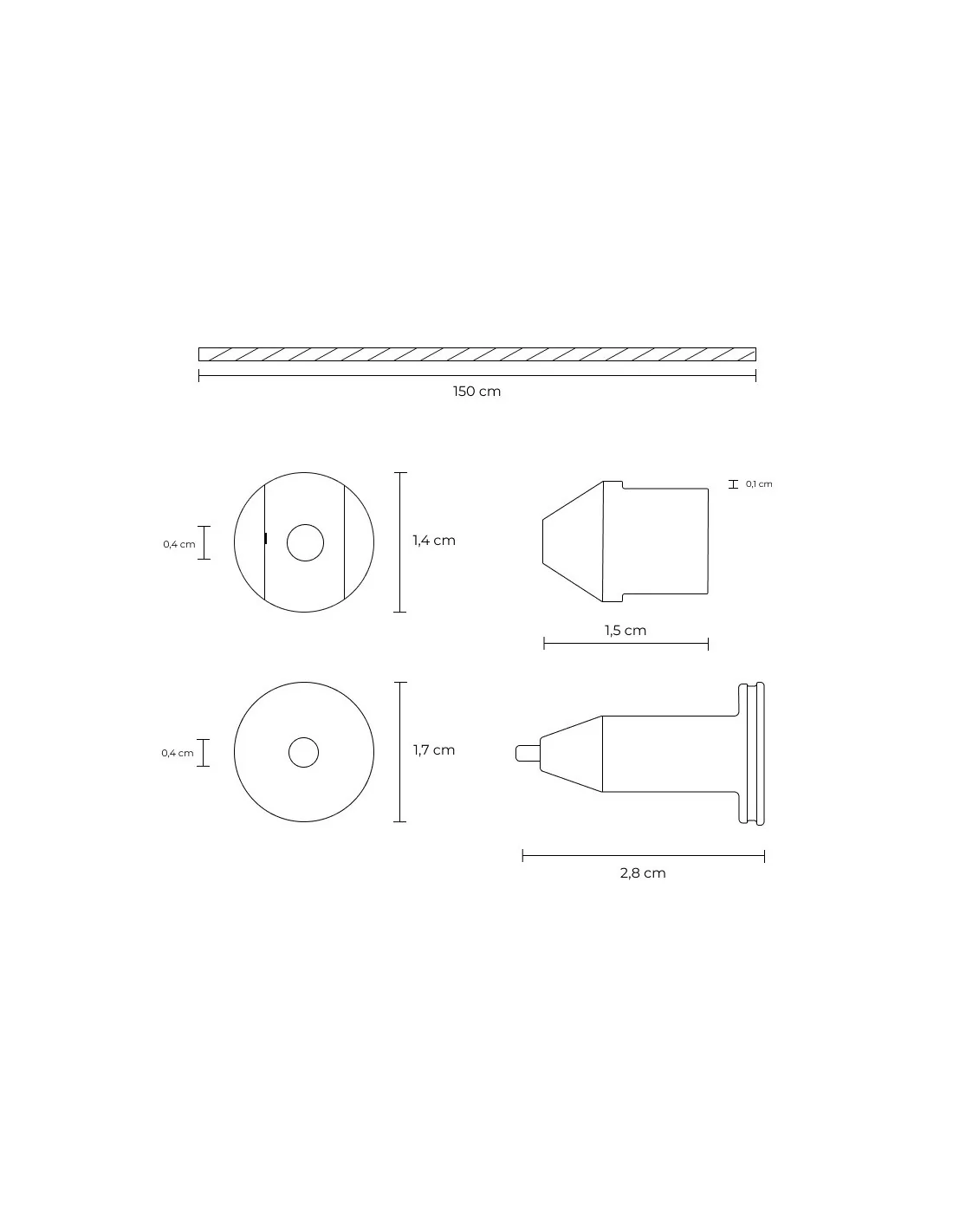 - Diâmetro e comprimento do cabo: 1.5 mm - 150 cm